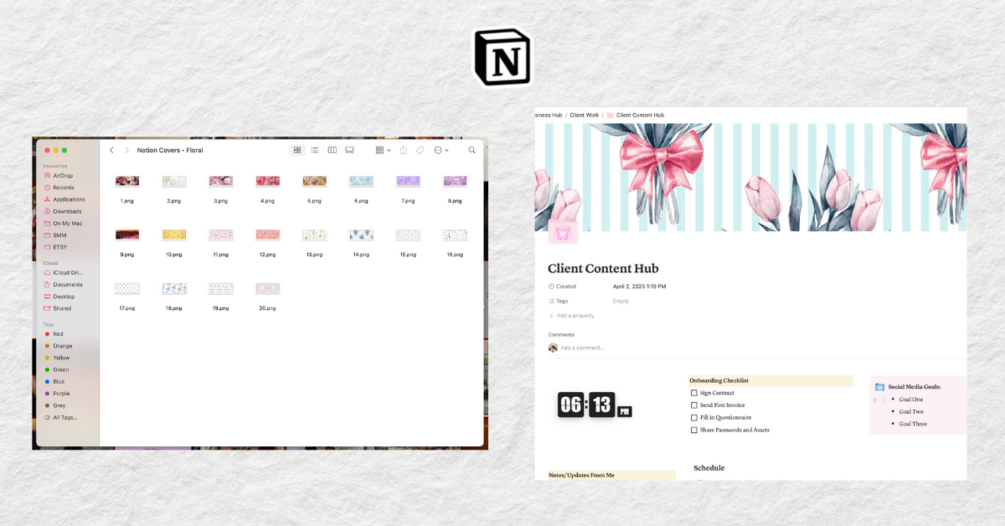 Bring the beauty of nature into your digital space with this Floral Notion Covers Bundle, featuring 20 elegant banner PNGs inspired by blooming gardens and delicate botanical designs. Perfect for anyone who wants to add a soft, natural touch to their Notion dashboard.